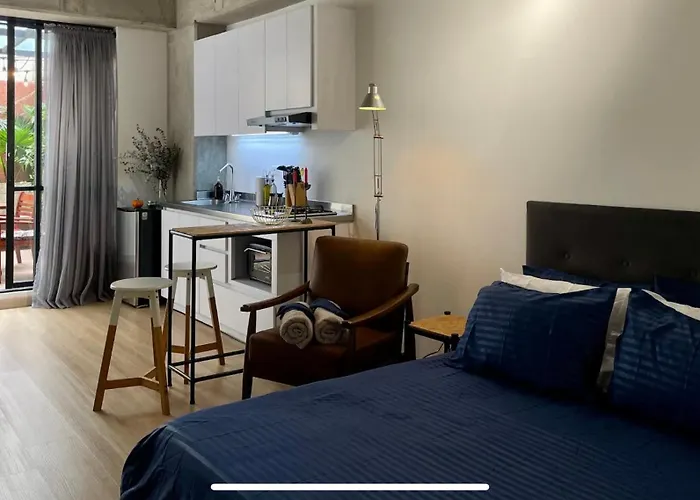 Die Ferienwohnung Loft Con Patio Privado bietet seinen Gästen die Annehmlichkeiten von Selbstversorgern, wie eine voll ausgestattete Küche und einen Essbereich im Freien. Der Flughafen Olaya Herrera ist 5 km entfernt, während der Busbahnhof El colombiano in 950 Meter Entfernung von diesen Unterkünften liegt.